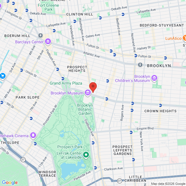 Subway: 2/3 to Eastern Parkway-Brooklyn Museum or 4/5 to Franklin Avenue